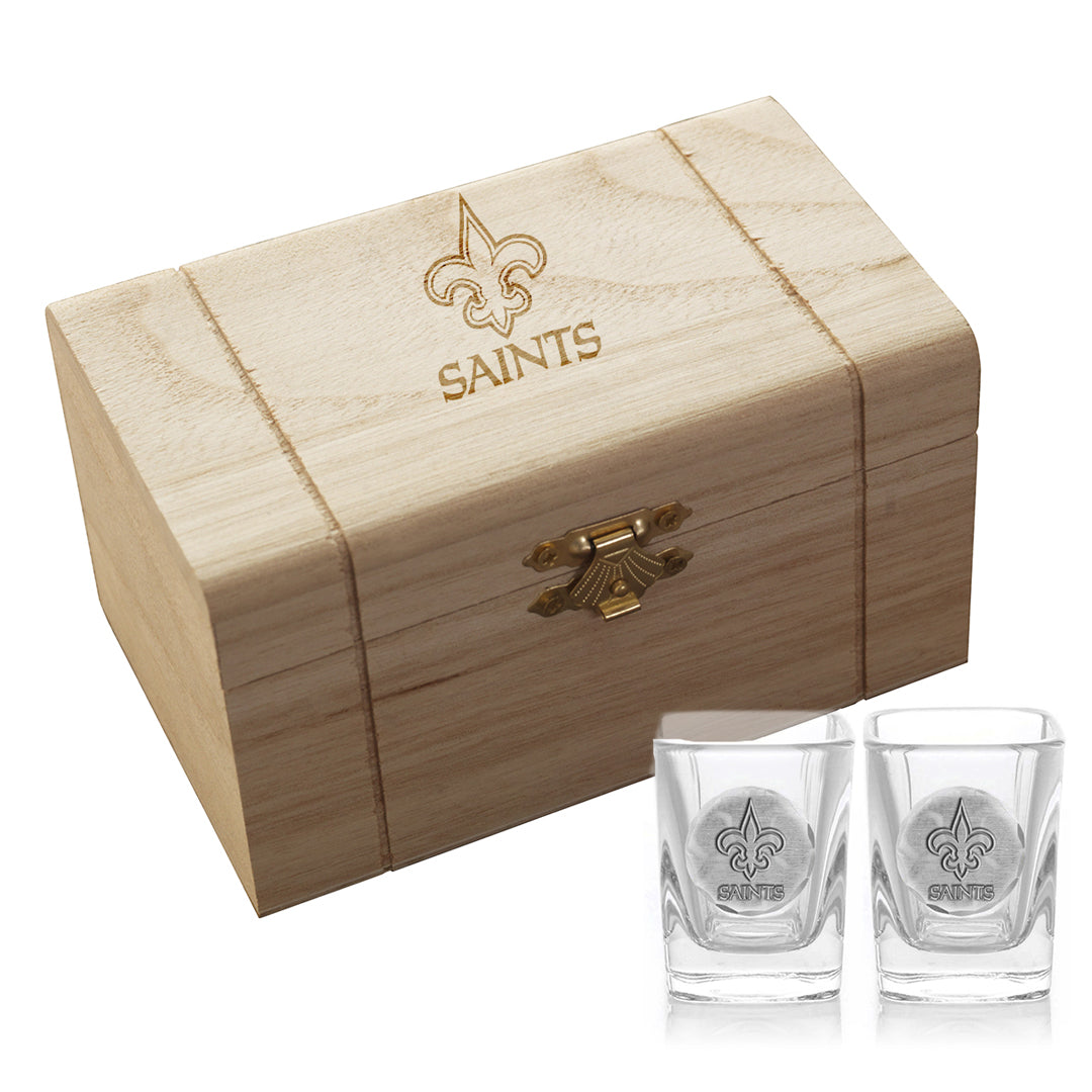 New Orleans Saints 2-Piece Shot Glass Set and Box (Aluminum)