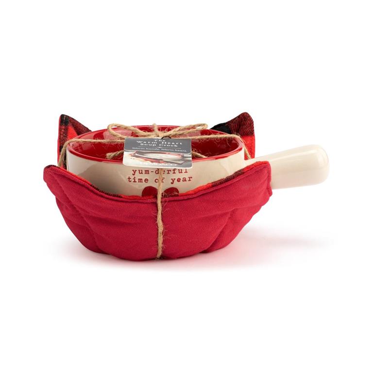With a hand-thrown feel and shape, the artisan goods from our Warm Heart Collection (like the Yum-derful Time of Year Soup Crock & Bowl Cozy) offer just the right fit for hands and hearts in need of warming.