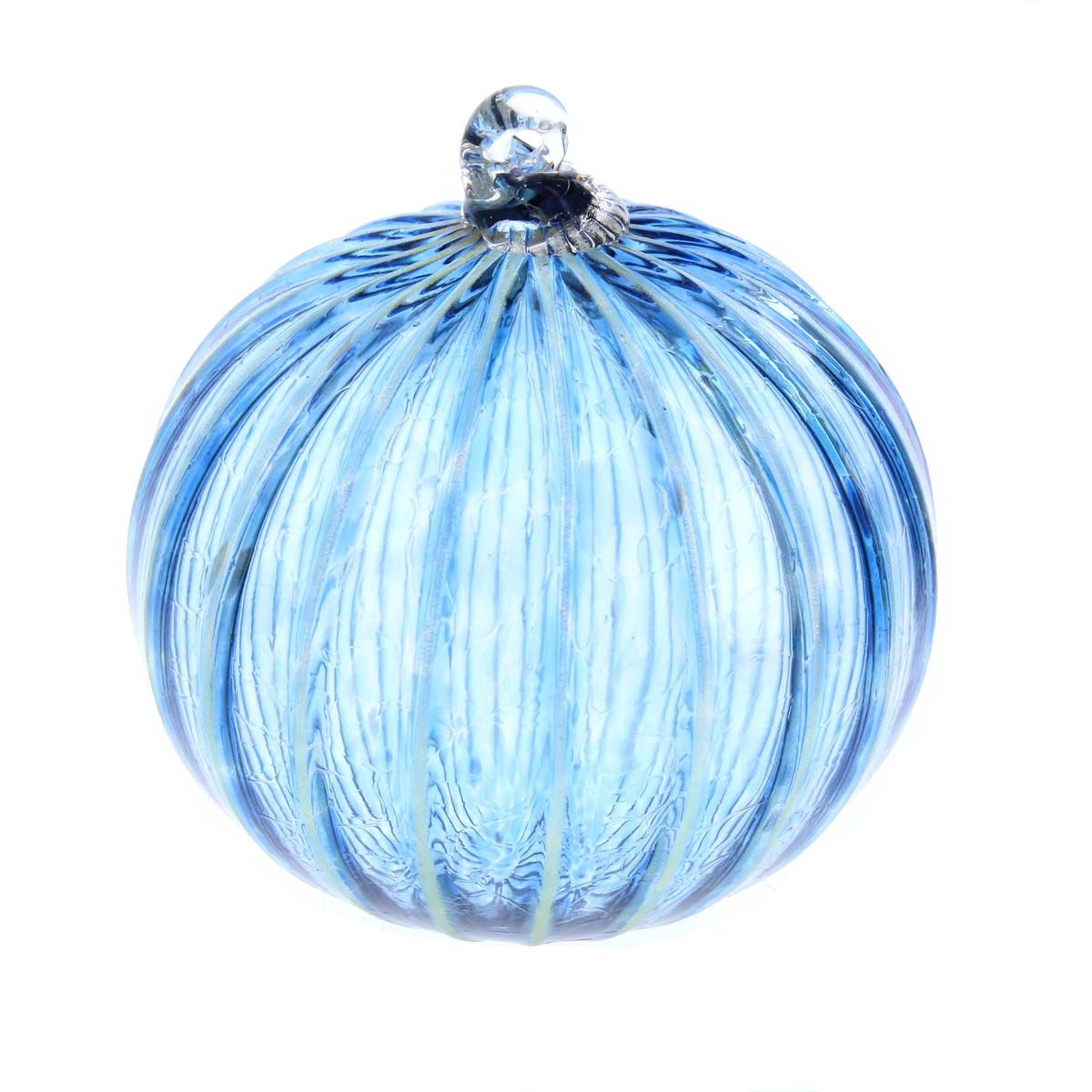 Glass Ornament Jewel Tone Aqua with Gold Rib